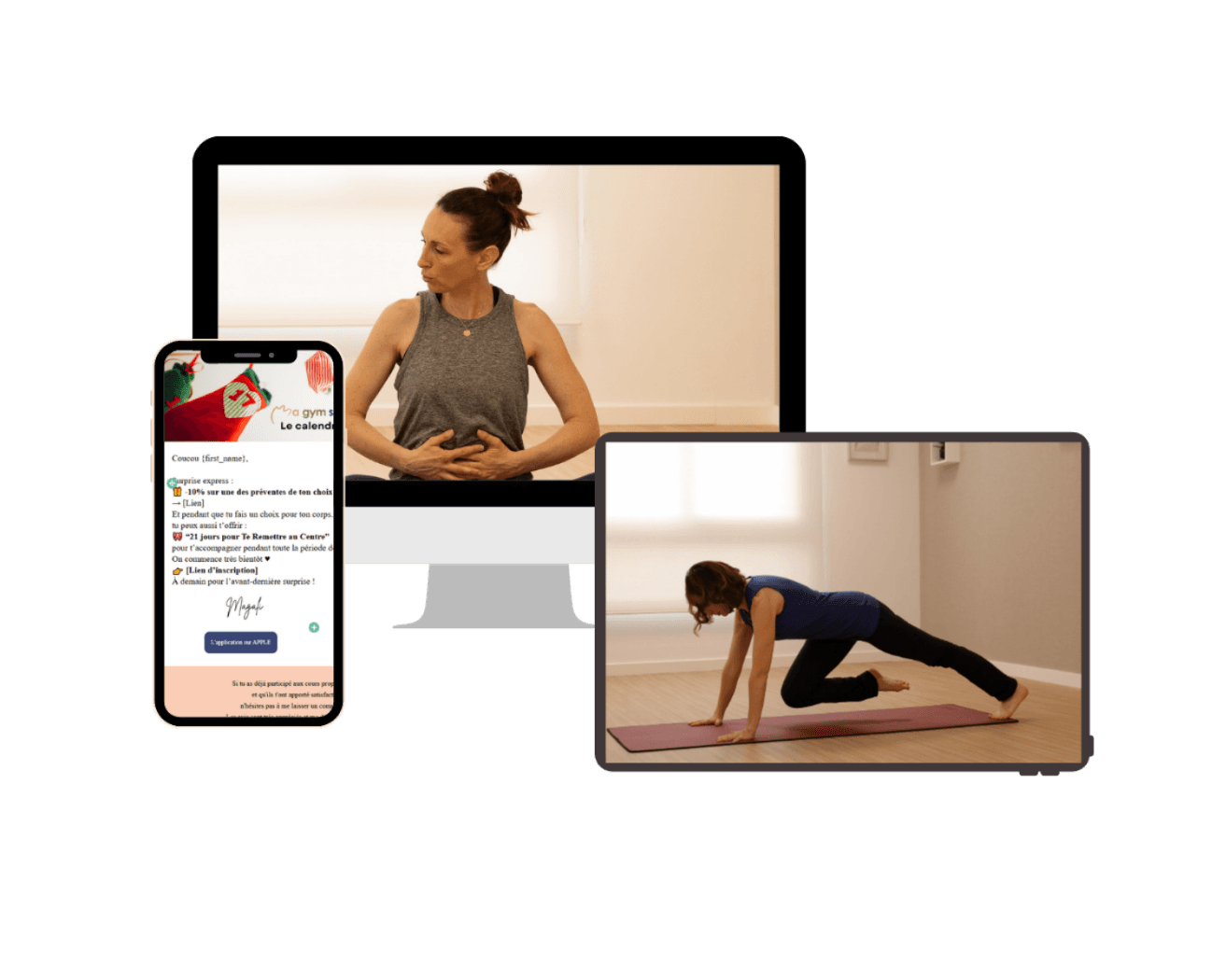 de la mobilité, des exercices de respiration, des entrainements pour un périnée fonctionnel, des étirements, du renforcement musculaire doux, des flow relaxant…